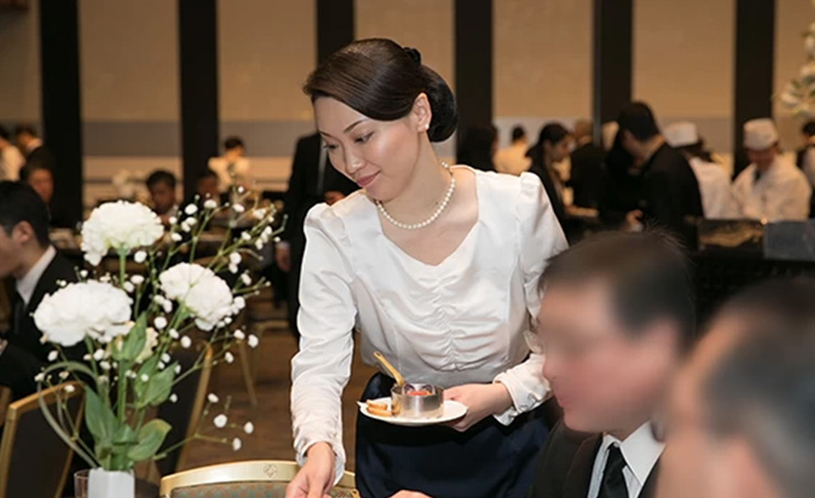 私たちは、ホテルや式場での宴席・パーティー・式典などにおける受付・アテンド・接遇を担い、企業様の大切なゲストをお迎えする場面を円滑にサポートいたします。スタッフ一人ひとりが徹底したマナー教育を受け、きめ細やかな心配りを実践することで、主催者様の想いを形にし、来場者の記憶に残る時間を創出します。